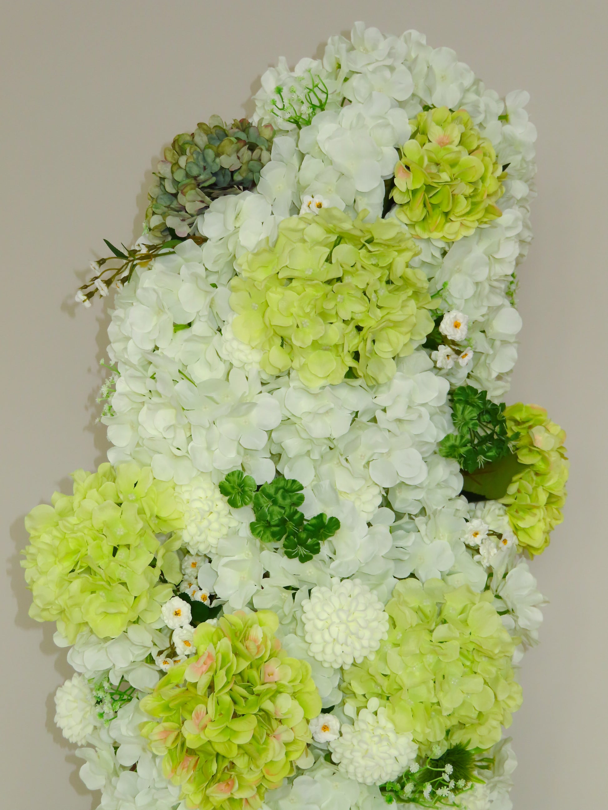 This asymmetrical wedding ceremony arch is crafted using premium faux florals, including real-touch hydrangeas and roses that closely mimic the look and feel of fresh blooms. Styled with a relaxed, free-flowing design, it offers a romantic yet understated focal point for exchanging vows.