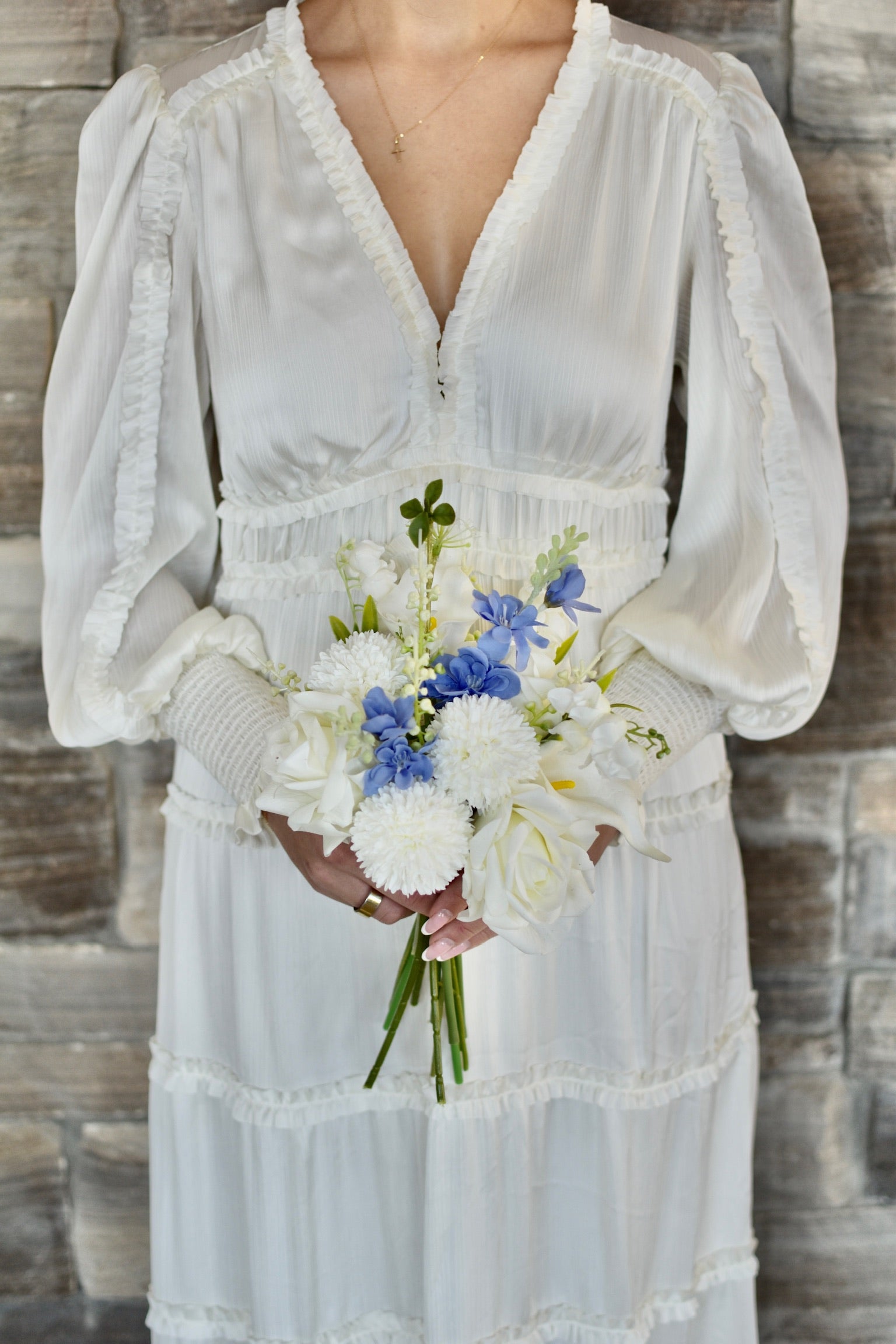 Elegant and timeless, our bridesmaid bouquets are thoughtfully designed to complement the bridal arrangement while maintaining their own delicate charm. Each bouquet features a balanced selection of high-quality faux blooms, hand-arranged to create a cohesive look that photographs beautifully and lasts all day—no wilting, no worry. Perfectly sized for your bridal party, these bouquets bring a soft, romantic touch to every dress and colour palette.
